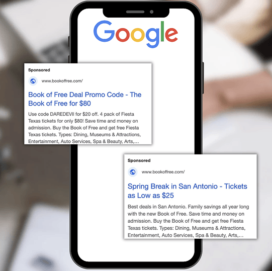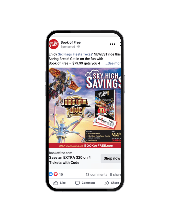 With a goal of driving customers further down the acquisition funnel and increasing Book of Free e-commerce sales, Noisy Trumpet developed a digital advertising campaign to promote their 2021 Spring Sale. The campaign ran from 2/15/21 to 3/21/21 and implemented the use of a promo code. The following tactics, along with TV spots in the San Antonio market and email marketing, were used to engage with prospects and existing customers across multiple channels: