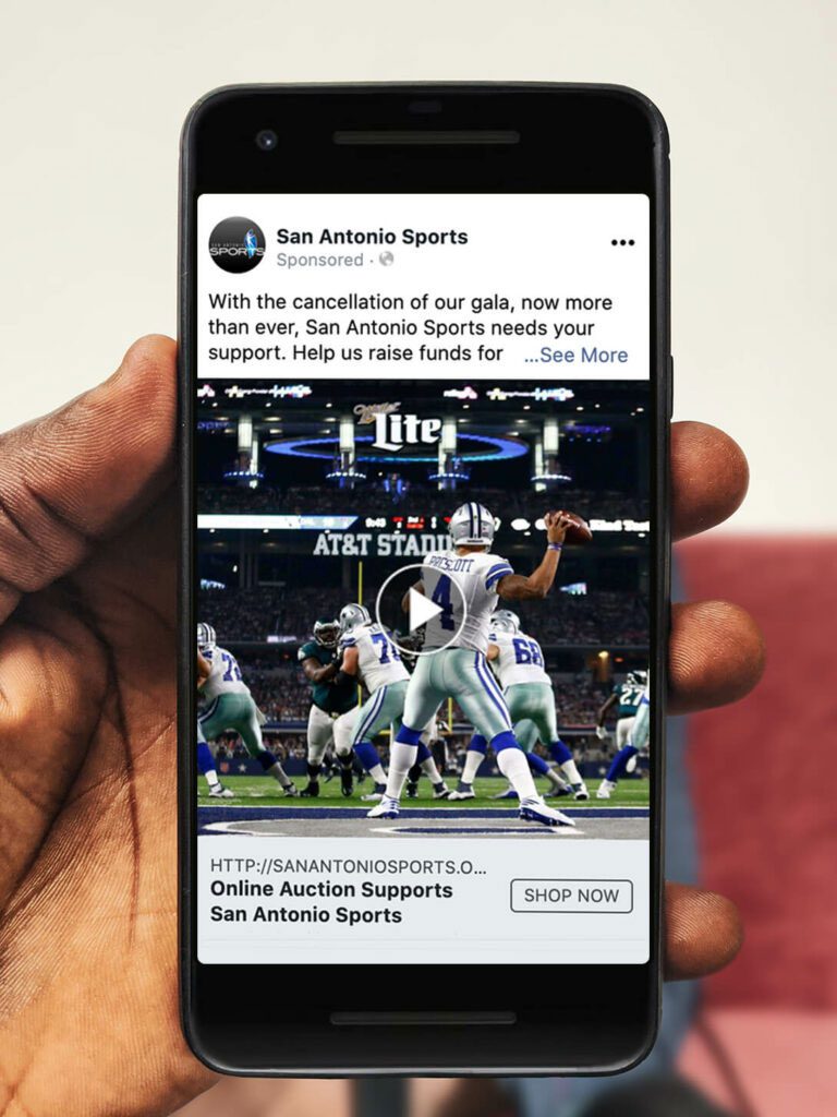 Noisy Trumpet worked closely with San Antonio Sports and SA YES to help raise money by promoting their online auctions that would have otherwise taken place at their annual fundraisers. Both clients successfully transitioned hundreds of auction items onto an online platform. These items included sports collectibles, gift cards, travel packages, and more. In order to promote the auction and drive bids, Noisy Trumpet developed and launched social media ads featuring auction items, while targeting past event attendees and donors. We were able to quickly pivot to continue to support our client’s needs.