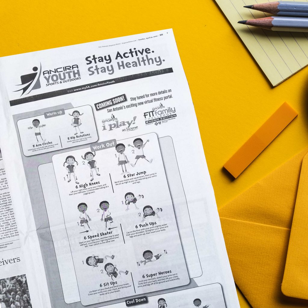 Secondly, while the i play! afterschool program was canceled for the remainder of the school year, San Antonio Sports continued to provide sports and fitness opportunities for children by sharing resources for them to stay active and healthy at home. To further support San Antonio Sports’ i play! afterschool program, Noisy Trumpet developed a special “Stay Active, Stay Healthy” coloring sheet and infographic to help keep kids moving during the quarantine. In order to boost awareness, we shared details about the initiative with local media outlets and asked influencers to post a video of them exercising or re-post the infographic with the hashtag #iStayActive.