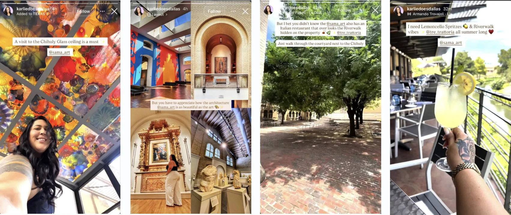 - Hosted Texas-based creators for a curated “Summer Culture Crawl” experience